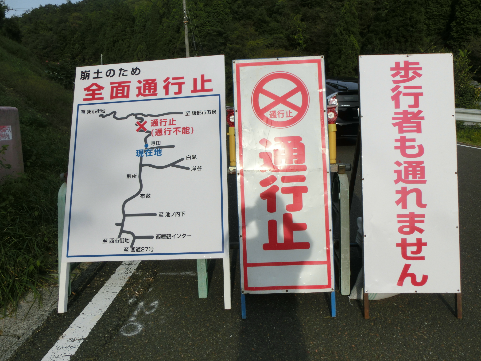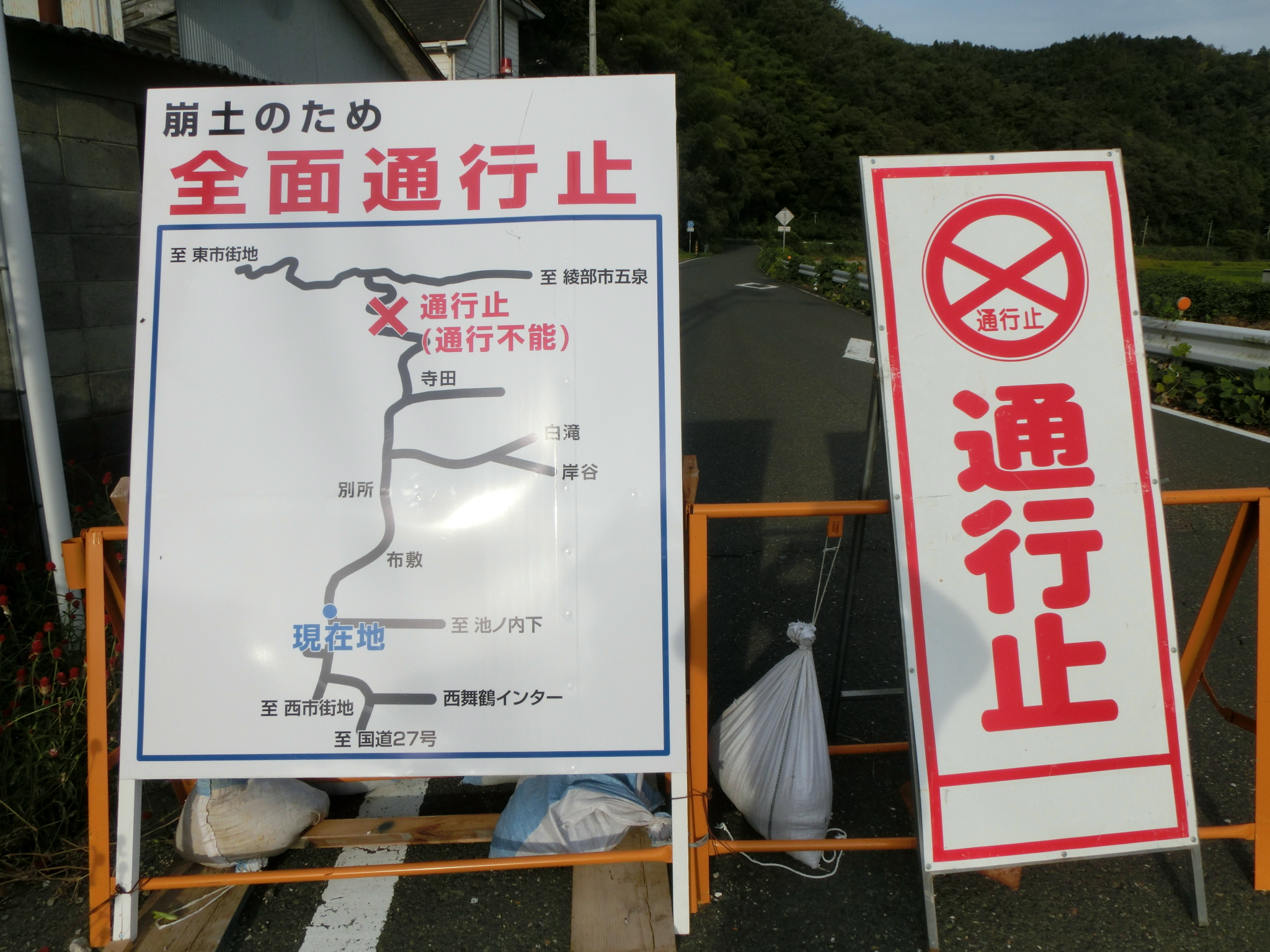 松尾寺峠↓3か所で通行止め